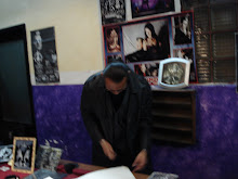 EL AHORA TEATRO FANTASMA SE FUE COLMANDO DE , DAMAS DE LA NOCHE, OSCUROS SERES ALADOS,HOMBRES Y MUJERES DE ADEMANES SINIESTROS, PERSONAJES QUE PARECIAN HABERSE SALIDO DE ALGUNA PELICULA LUGUBRE , DE LAS DE BLANCO Y NEGRO...REVOLOTEANDO ALREDEDOR DE LAS EXPOSICIONES DE ARTICULOS DE LACRIMOSA, DEL ESCENARIO, DE LAS MESAS, DE LAS COLECCIONES, EN FIN DE TODO EL LUGAR; QUE SEGUIA LLENANDOSE DE SERES NOCTURNOS.