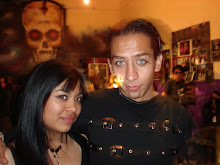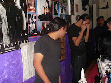 AL TERMINO DE ESTO APARECIERON UNA DAMA DE NEGRO, Y UN CAZADOR DE SUEÑOS , DOS PERSONAJES TEATRALES QUE DURANTE TODA LA NOCHE FUERON LOS ENCARGADOS DE CONDUCIR EL EVENTO CON UN PARTICULAR Y ORIGINAL ESTILO, QUE A MANERA DE REPRESENTACION TEATRAL OTORGARON OBSEQUIOS, RIFAS , DISCOS,TATUAJES REALES, LIBROS ETC, ETC, A ALGUNOS DE LOS INVITADOS DE LA NOCHE.